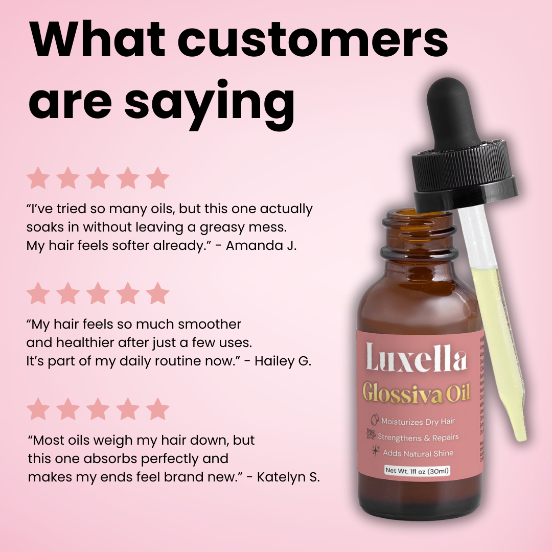 After using the Luxella oil for a couple of weeks, my hair feels so much stronger and looks noticeably shinier. It absorbs quickly without leaving any residue, & the scent is amazing!