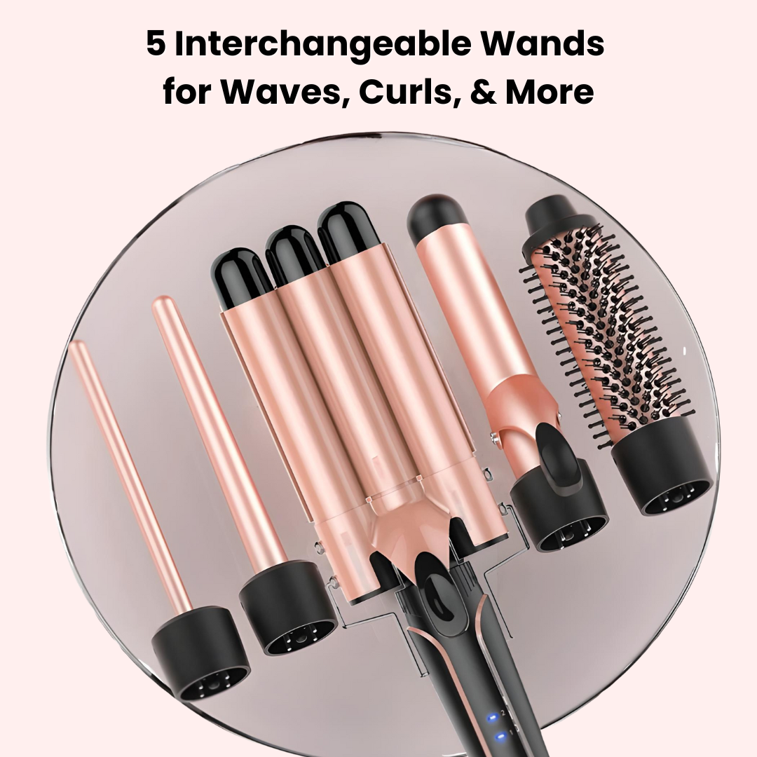The ProWave Set features five interchangeable wands, advanced heating technology, and a frizz-free ceramic coating, allowing you to create multiple styles with just one tool.